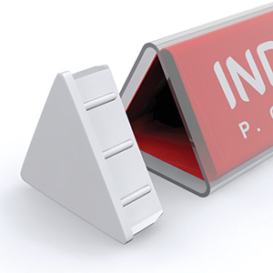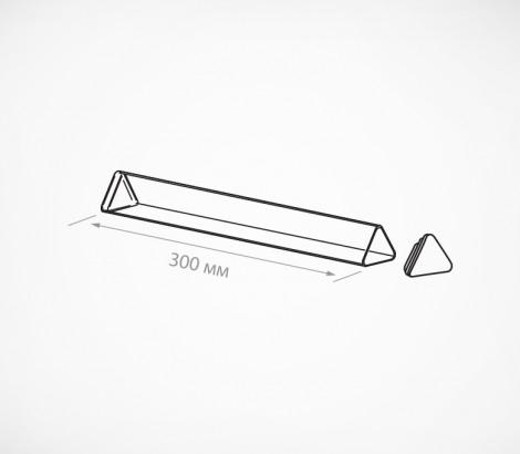 Разделитель треугольного сечения. Предназначен для разделения товаров покупателя, на кассовой ленте. Изготовлена из прозрачного пластика. В комплект входят 2 заглушки. В внутрь разделителя, может вставлятся рекламный носитель. Длина – 300 мм. Сторона треугольника 36 мм.