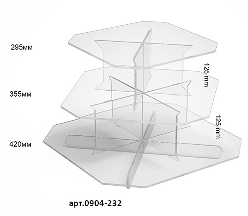 Квадратная витрина для различных товаров. Материал изготовления, оргстекло пять миллиметров, лазерная обработка материала. Эффективно выделяет товары, расположенные на витрине. Возможно изготовление в белом цвете + 20% к стоимости.