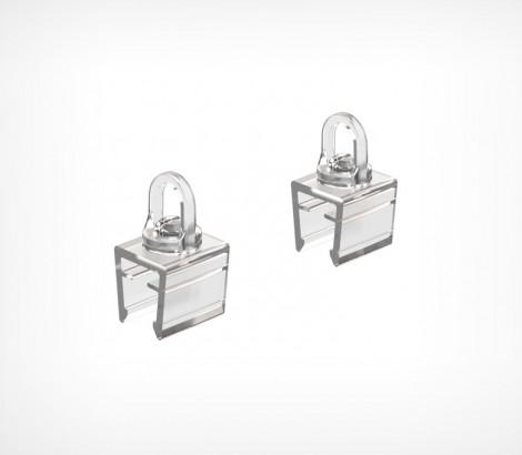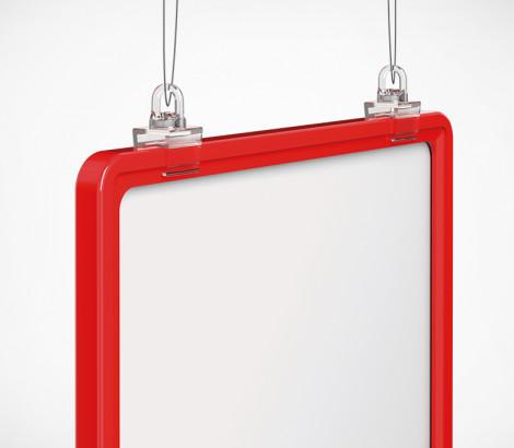 Клипса для подвешивания пластиковых рам на трос, цепочку и т.д. Имеет поворачивающуюся петлю, что позволяет позиционировать рамки и исключает "закручивание" подвесного троса. Закрепляется с верхней стороны рамки. Для подвешивания одной рамки рекомендуется использовать две клипсы .