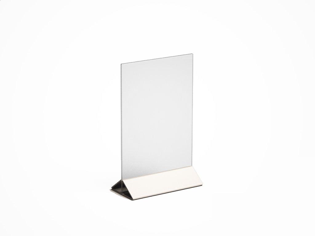 МЕНЮХОЛДЕР ФОРМАТА А-5, С НИЖНЕЙ ЧАСТЬЮ РАЗЛИЧНЫХ ЦВЕТОВ, КЛАСИЧЕСКОГО ВИДА. СОСТОИТ ИЗ ДВУХ ЧАСТЕЙ, ПРОЗРАЧНОГО ПЛАНШЕТА И НИЖНЕГО ДЕРЖАТЕЛЯ, ТРЕУГОЛЬНОЙ ФОРМЫ. ПОДХОДЯЩИЕ ИЗДЕЛИЕ, ПРИ НЕОБХОДИМОСТИ ПО ОСОБЕННОМУ ВЫДЕЛИТЬ ИНФОРМАЦИЮ. ПЛАНШЕТ ВСТАВЛЯЕТСЯ В ДЕРЖАТЕЛЬ С ВЕРХУ.