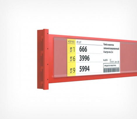 DBR 73 — полочный самоклеящийся ценникодержатель для ценников высотой 73 мм. Предназначен для размещения ценников с крупным шрифтом и детальной информацией о товаре. Используется в магазинах бытовой техники, электроники, DIY-сегмента и гипермаркетах. Легко монтируется и надёжно фиксируется на любые гладкие и ровные поверхности благодаря самоклеящейся основе.