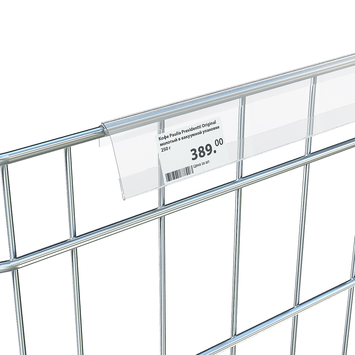 Ценникодержатель предназначен для размещения ценников на сетчатых полках, корзинах распродаж, дисплеях из металлической проволоки. Конструкция профиля позволяет закреплять его на металлических прутьях и при необходимости легко откидывается вверх для удобного вынимания товара с полки.